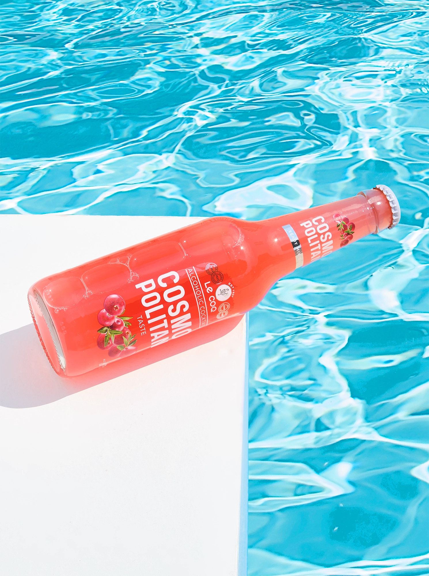 For Le Coq Cocktails, we created a vibrant visual identity for their summer campaign, highlighting the playful character of the brand’s ready-to-drink cocktails. With bold contrasts, geometric setups, and the pool’s sparkling blue as a backdrop, the imagery emphasized freshness, fun, and accessibility.