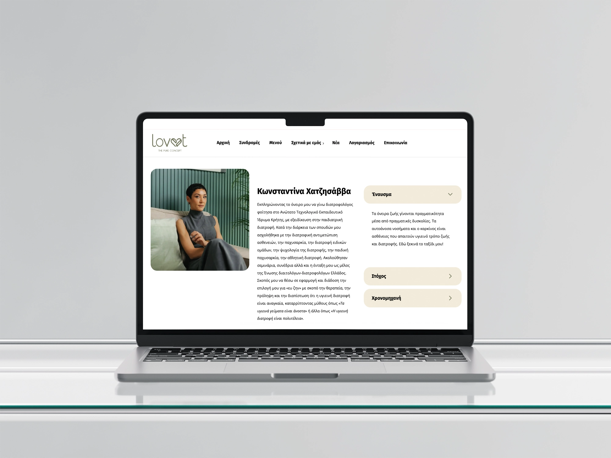 ach. Comm designed and developed the official website of Loveat – The Pure Concept, a digital hub that brings together nutrition, fitness, and gastronomy in one platform.